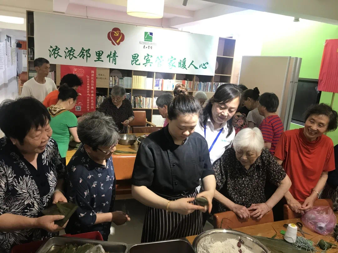 为了让共建社区居民深入了解传统节日、传承文化习俗,增进邻里和谐,宾馆党委联合里厍街区党建联盟开展了“浓浓邻里情,昆宾管家暖人心”主题活动,和社区居民们一起共度端午节。